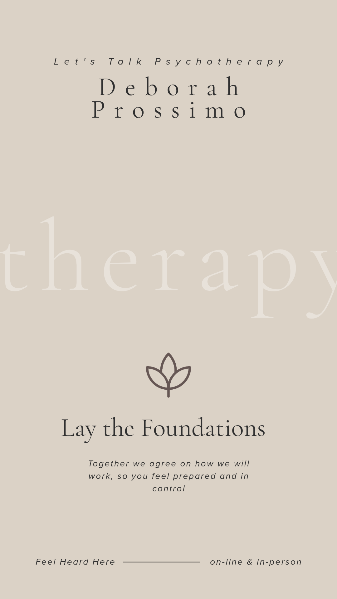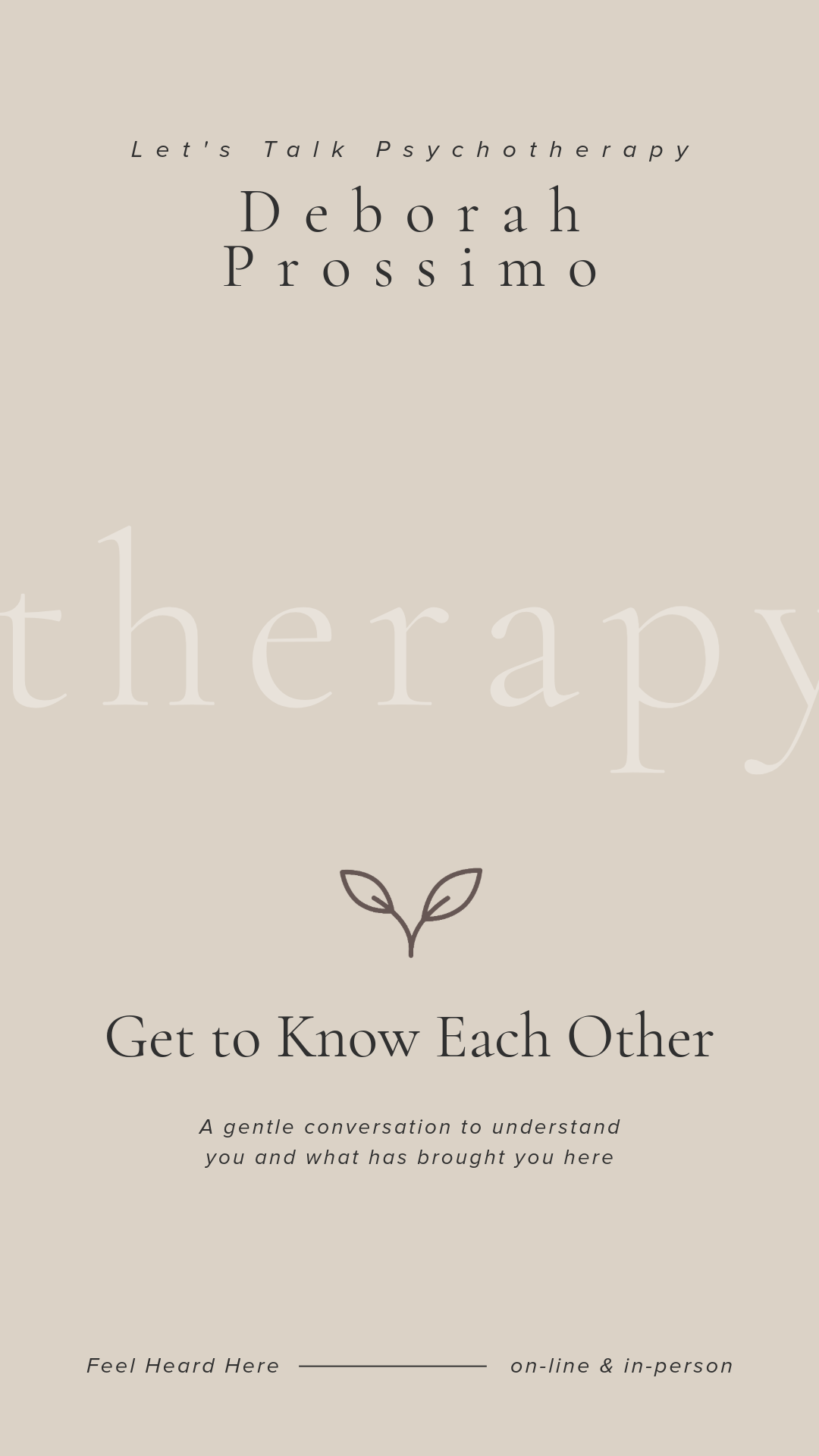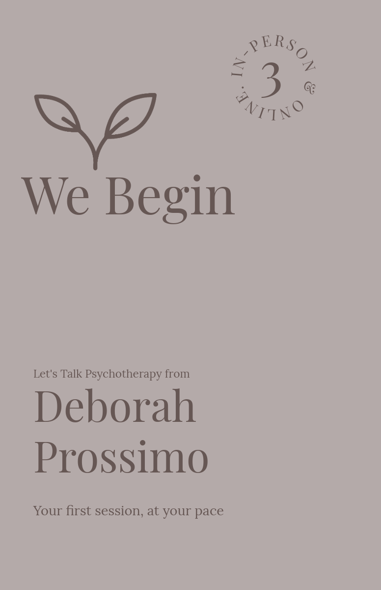 Step 2(15–30 minutes) This is a relaxed, no-obligation conversation. It is a chance to share a little about what has brought you to therapy, ask any questions, and get a feel for whether working together feels right for you. Tip: Take a few quiet minutes beforehand to reflect on what you'd like to discuss. Have your diary to hand in case you'd like to book a first session.